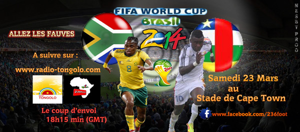 On y est plus que quelques heures pour assister au premier duel des fauves pour l'année 2013. Ce premier match comptant pour la troisième journée des éliminatoire de la coupe du monde 2014 prévu au Brésil. Un match qui sera retransmis sur radio tongolo et aussi sur les stations locales en Centrafrique, pour suivre le match en streaming cliquer sur les liens à guauches dans l'onglet "Blogs et sites préférés" . Le coup d'envoi est prévu pour 18h15 GMT, bonne chance aux fauve, tous derrière les fauves "ALLEZ LES FAUVES, ALLEZ LES BAMARAS"
